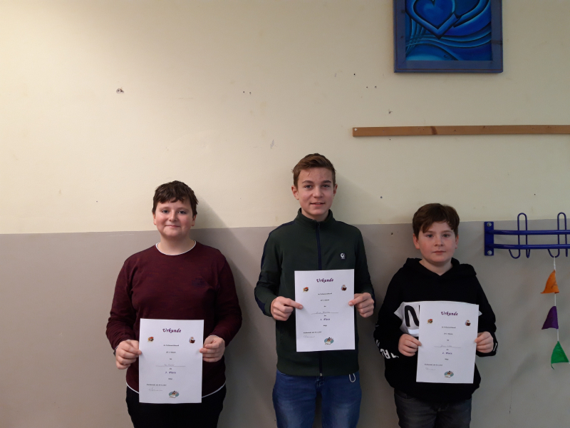 Sieger des Vorlesewettbewerbes wurde Lucas Früchtl. Lucas wird unsere Schule im Januar im Kreisausscheid vertreten. Den zweiten Platz "erlas" sich Jamie Sillke.