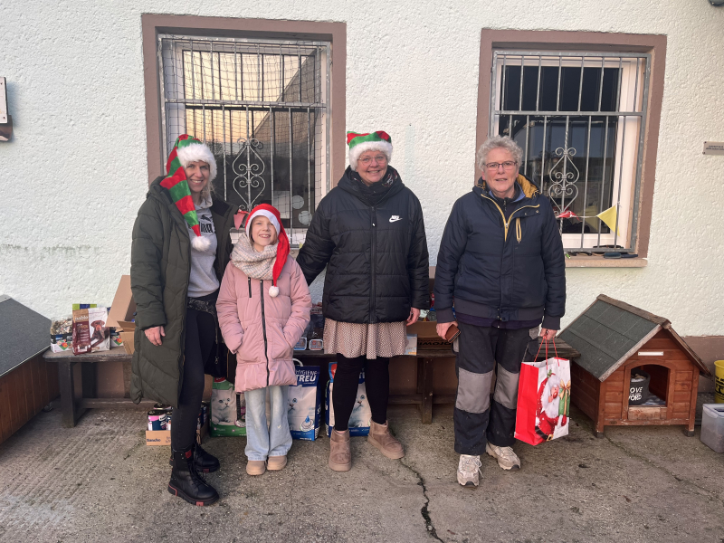 Am 14.12.25 wurden die Spenden von Vertretern der Klasse 6b an die Mitarbeiter des Tierheims übergeben. Die Freude war groß.