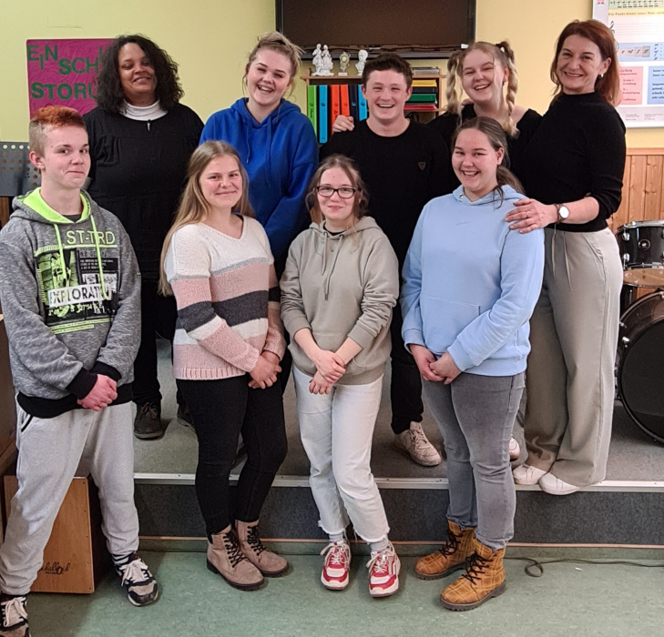 Schülerinnen der Klassenstufe 9 und unserer Schulsozialpädagogin, am